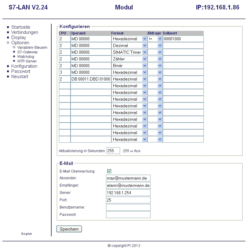 Von einem, im gleichen Subnet erreichbaren, NTP-Server kann die aktuelle Uhrzeit gelesen und in das AG geschrieben werden